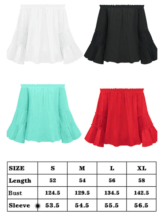 Women's Slub Cotton Women's Flared Sleeve One-Line Neck Sexy Top