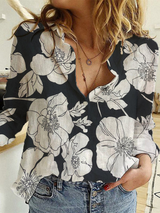 Women's Solid Color Casual Loose Long Sleeve Linen Shirt