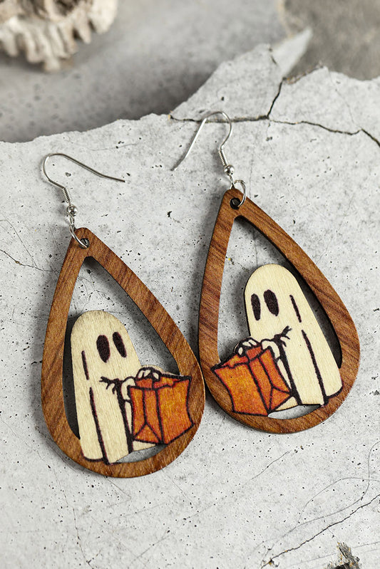 Brown Animal Print Pumpkin Shape Drop Earrings