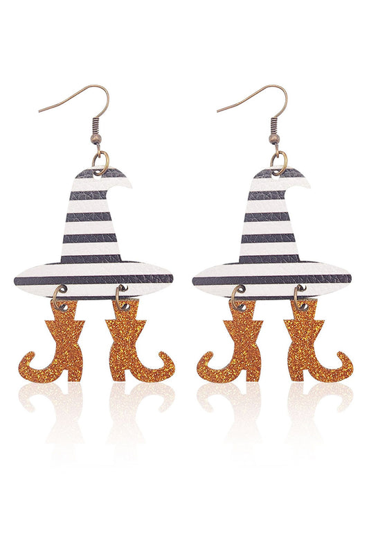 Multicolour Halloween Striped Witch Hat & Boots Earrings