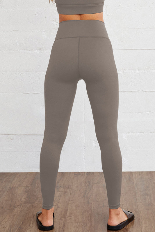 Gray Wide Waistband Ribbed Textured Knit Leggings